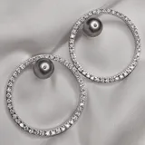 These sumptuous 18K white gold hoop earrings combine refinement and modernity in a bold and perfectly balanced design. Each earring is fully paved with sparkling white diamonds, creating a luminous and delicate circle. In contrast, a deep gray Tahitian pearl sits atop the earring, adding a touch of exoticism and rarity.